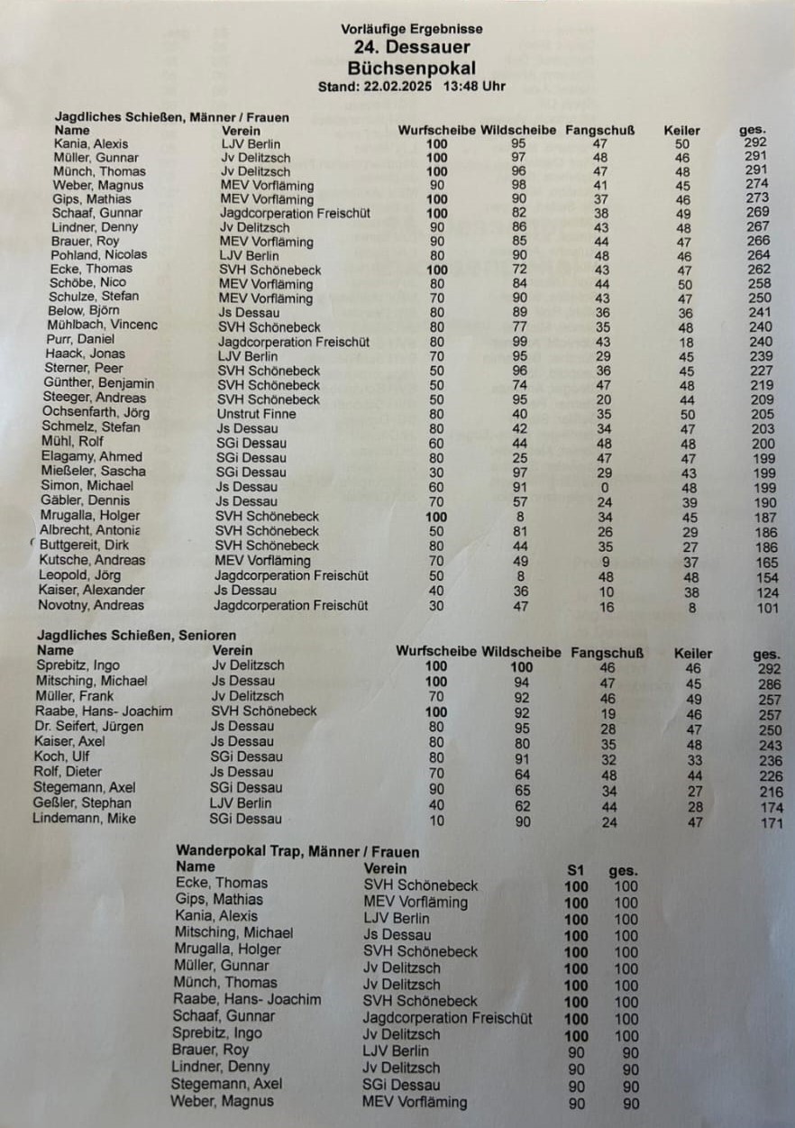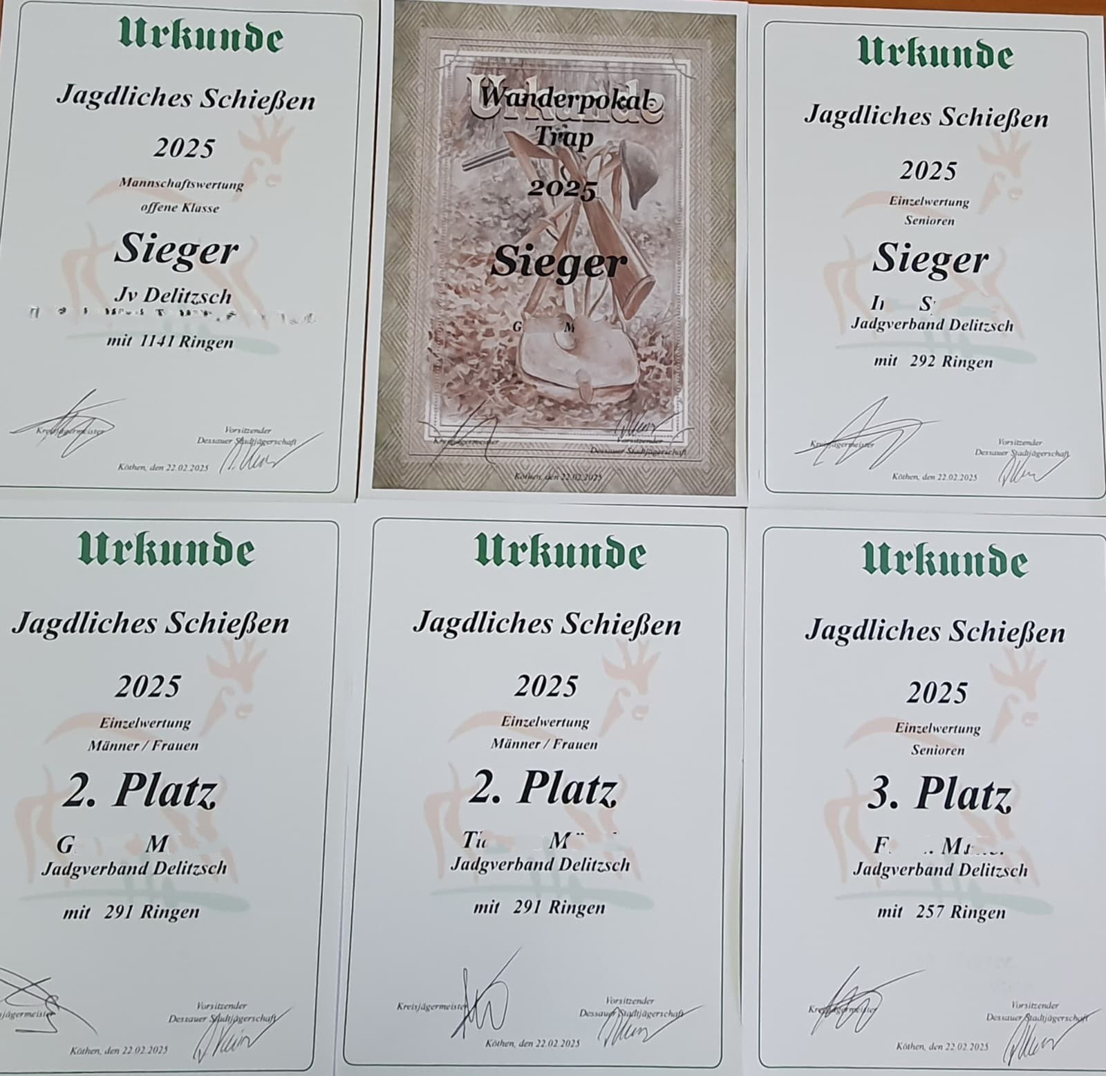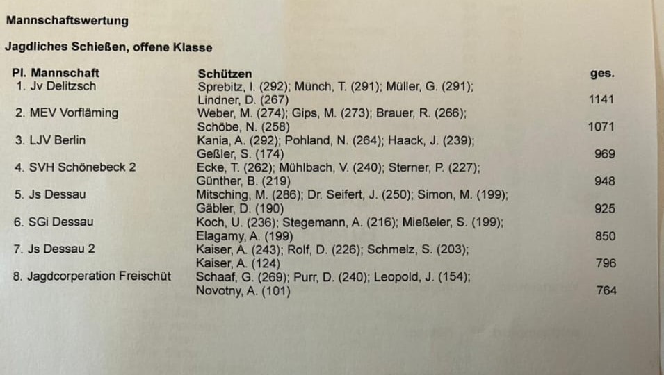 Auf dieser Seite veröffentlichen wir Ergebnislisten von Wettkämpfen an denen Mitglieder vom Jagdverband Delitzsch teilgenommen haben sowie Wettkämpfe, welche der Jagdverband Delitzsch selber veranstaltet hat.